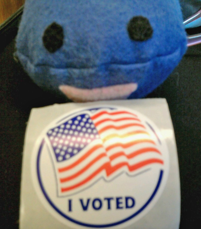 Okay people, here’s the thing. If a stuffed mitochondrion can register to vote, comprehend the crazy “legalese” in which the ballot issues are written, and then somehow hold a pen (or pencil or whatever you use in your state) to vote for the things he thinks are important then so can you!