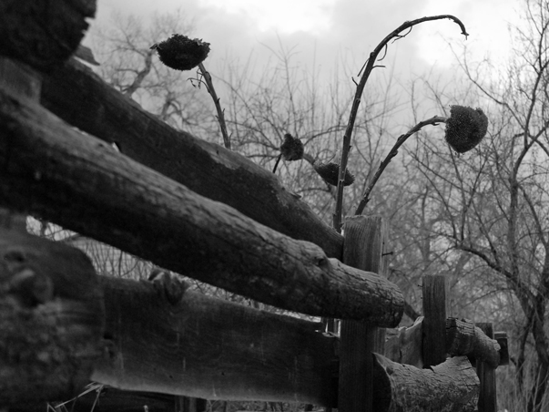 This weekend Cobalt and I went for a walk around my neighborhood. On our way back, we saw these poor dead sunflowers lurking over the top of a fence. Cobalt thought that they looked like nosy neighbors, looking over the fence to see what their next door “friends” are up to. I thought they looked like a giant claw coming up over the fence. I like the way this picture turned out – the fence is really neat and of course the sunflowers are epic… Good night sweet prince(s)… ;)