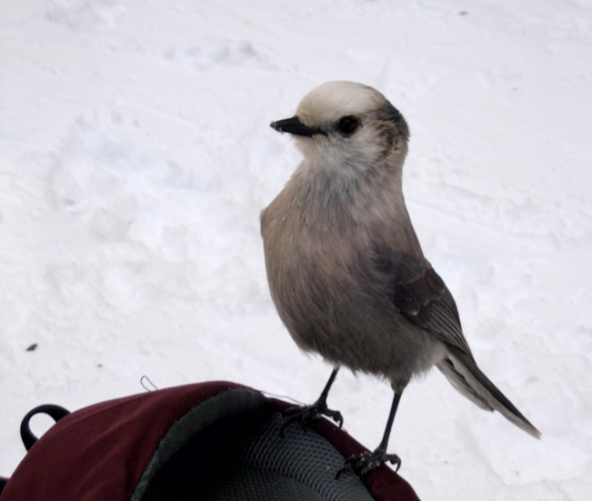 As for this little guy, he and his friend (you’ll see the friend tomorrow) popped up when I stopped to take a break and eat crackers. I was eating my crackers next to these girls who were eating all sorts of delicious looking muffins and such and well the birds wanted in on the sweet deals. I soon found that if I threw the birds a cracker every once in a while, they’ll stay still enough for me to get some cute pictures of them! This bird even hopped up on my backpack! I love how you can see the snow on his beak… Awwww!