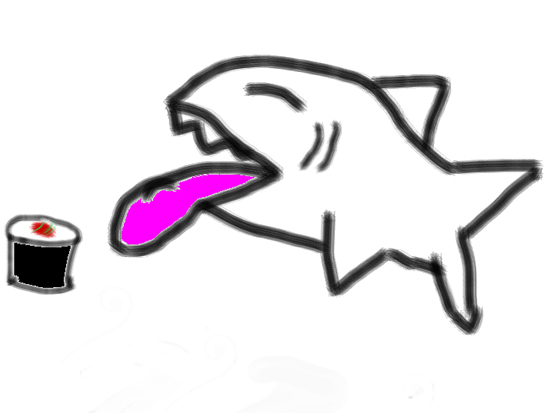 Sometimes I like playing with my Bamboo Pen tablet… It is amazing. For this picture, I was trying out a free application that comes with the tablet called “Sumo Paint.” It’s roughly a free equivalent to Photoshop and is made specifically for the tablet. It has some strange quirks to it but I guess that is understandable in a free image editing program. Fun times… I hope that shark gets to eat his sushi…