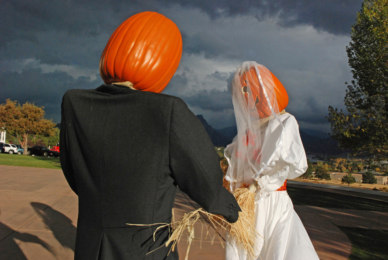 Halloween’s coming up so I thought it would be fitting to have a Halloween themed post today. Also, I thought it’d be kind of cute if my Tuesday and Thursday posts (my “free” days) were wedding themed this week. So we get this picture, taken at The Stanley Hotel in Estes Park, CO (known for its association with The Shining), which is all decorated for Halloween. There were pumpkin scarecrows everywhere! These two were my favorite because 1) yesssss I am planning my own wedding so I have a strange affinity for weddings right now but mostly 2) the sun was shining down on them in such a neat way that I just had to take a ton of pictures of them. So cute… Halloween bride and groom! Congrats guys! ;)