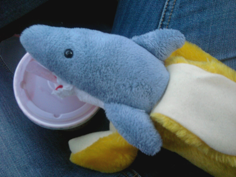 These past few weeks have been super busy for me mostly due to things going on in lab. However, while I was away in lab, my sharks got to have a lot of fun this week. First Banana Shark got to have Orange Julius and pie on Pi Day and then yesterday five of my sharks had the pleasure of chasing me around the apartment complex when I got home early from lab. These pictures were super fun for Cobalt and me to take… I have been planning this shoot for a while now. Unfortunately the sun got in our way a little bit (hence all the crazy flares) but no worries. We just might have to do it again… I had originally planned the shoot to use three people and not just two so we’ll just have to try it again… perhaps we’ll take the sharks to the park! :) I love Banana Shark in this bottom picture…