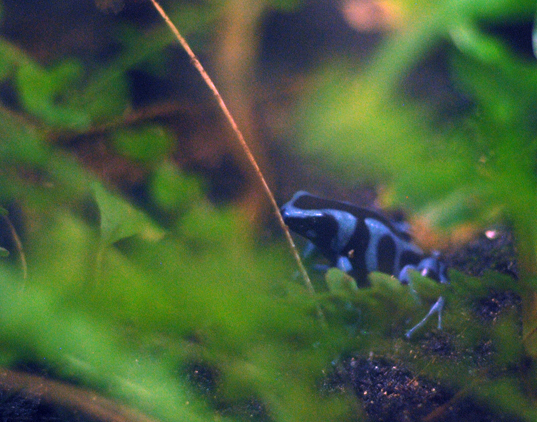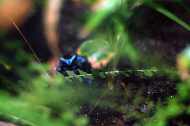 This weekend, Cobalt and I went to the Denver Botanic Gardens as part of his birthday adventures and we had a really good time. The gardens are kind of awesome (except the plains one which, in our opinion, seemed a little plain… :-/). It was all overcast and wet outside, which apparently inspired me to be really creative with my photography. I took so many cool pictures with my DSLR… it was awesome. As soon as I can pick out which pictures I like best, maybe I will post some cool flower pictures on here. Today’s pictures come from the rainforest part of the garden (verrrrry humid in there…) where they had some poison dart frogs. The frogs were being a little antisocial and hiding behind the plants in the darker parts of their aquarium so it made taking their pictures kind of challenging (working at really low exposure speeds and f stops…). Which is your favorite?