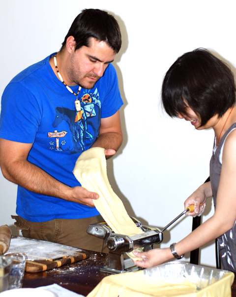 Next we have Cobalt and T working on making the spaghetti… The pasta machines were of course the best part…