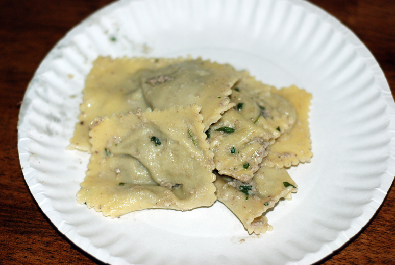 Yesterday, Cobalt and I went over to our friend L’s house to hang out with L and our friends T and C for a day of adventure. We made homemade pasta. L charged us with two tasks: making mushroom ravioli and spaghetti carbonara. So we divided into two teams – Cobalt and T on the spaghetti and C and me on the ravioli while L started on the ravioli filling. That picture up there is my sad looking mummy ravioli. He surprisingly didn’t explode when we cooked him so I guess I patched him up pretty well! C said he was delicious… :)