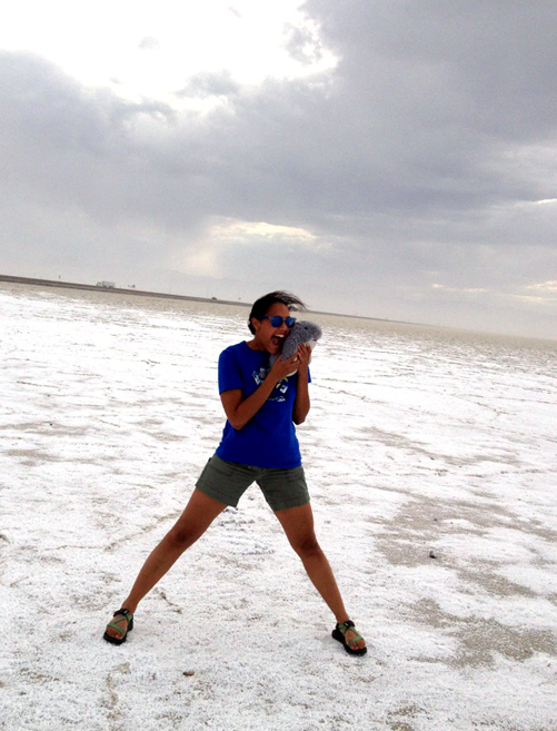 (up there) The T and I (and Gustav) at the salt flats in Utah. It was quite windy…