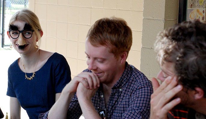 I love that C and L seem skeptical about the parasol while K seems so happy about it.
