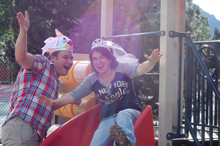Hooray! Wedding anniversary pictures finally!* :D So before you scroll down to see the rest, let me tell you a little bit about the party. It started out a little sketch because Cobalt and I were running around like crazy building things from IKEA and we lost track of time. When the first guests arrived, they got to go with Cobalt to the store to get party supplies and snacks while I made sure the house was in order. Then when more people showed up we headed to the park by our house with a bag full of props for the photo shoot! It turned out to be really fun as you can see below (in no apparent order)!