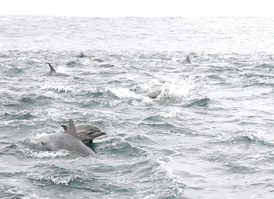 Photographing dolphins is one of those “shoot first, look later” types of experiences. Just set up your camera to have a pretty fast shutter speed, make sure it is on continuous shooting mode, and then go. Click click click click click click click click. The more pictures you take, the more likely you had a shot of a dolphin above the water. I think I took at least 1,000 pictures while on the boat (a feat normally reserved for weddings). Something else I struggled with: Do I use the zoom lens zoomed in or not? Zooming in meant that I got a fairly high resolution picture of a dolphin but it also decreased the likelihood of actually having a dolphin swim in the field of view when I took the picture. I kind of did a combination: zoom in… no dolphins… zoom out… ALL THE DOLPHINS…zoom in…