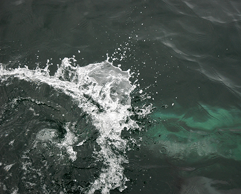 The benefit of having a fast shutter speed: even if you miss the dolphin (see the stripes underwater at the bottom right?), you still get cool splash photos.