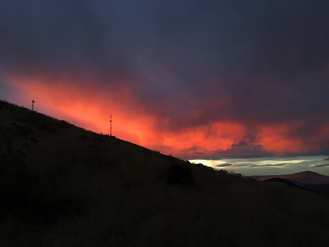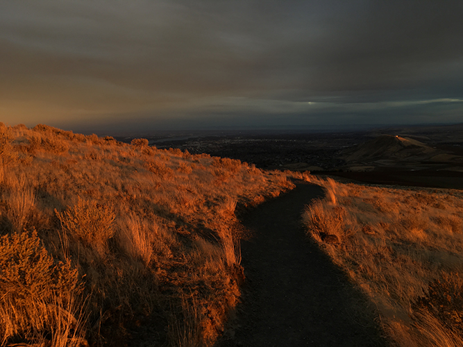 Then on Sunday afternoon, we headed back to hike the front of the mountain hill. We got there as the sun was starting to go down, and this epic gold color washed across the whole trail. Cobalt and I kept stopping to try to capture it on our phones. We had some success, as you can see from the that top photo this week. At least you could tell the lighting was epic. But really, I think you had to be there. The color was fantastic. Maybe I’ll post that pic again.