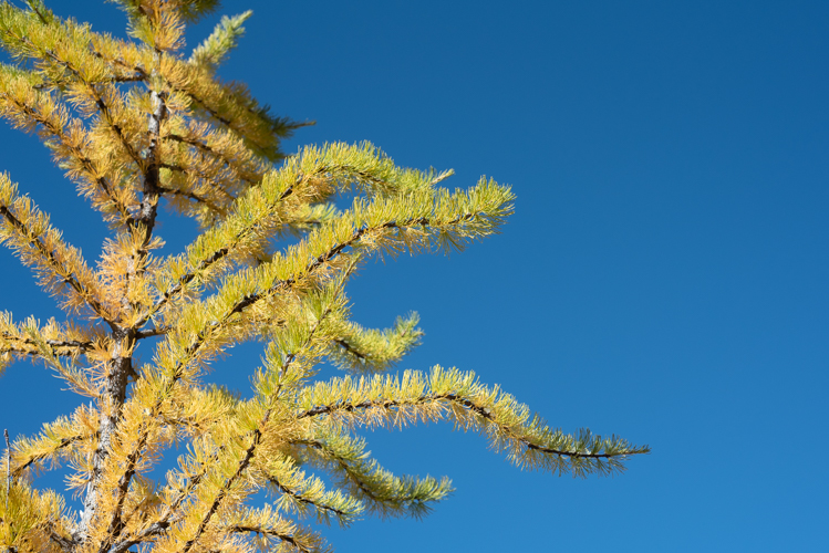 Similar to other deciduous trees, each larch needle turns yellow in its own time. It makes for a gorgeous mix of yellow and green on any given tree.