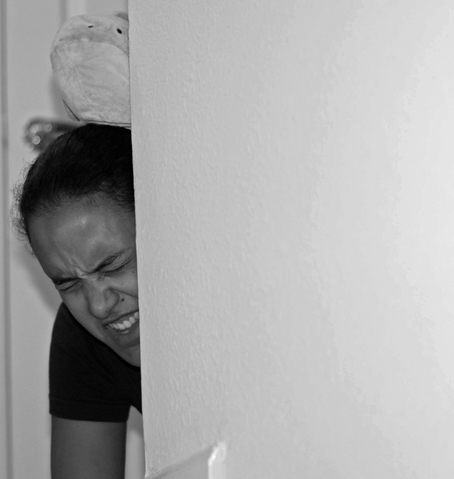 Sometimes I think that I shouldn’t be allowed to have as much fun as I do with my DSLR and its remote control. This picture (and the one below) were taken out of boredom and a huge desire to take a picture of me “lurking” upstairs. So I borrowed Cobalt’s tripod and set it up crazily on the stairs and then busted out the remote control. Russell the shark came along for the ride. These pictures were kind of silly not only to pose for but just to take in general. Every few pictures, I’d stop and run down the stairs to check out my results/determine if I wanted to change any of the settings/my poses or whatever. Ha… I am so weird. Anyway, I love this picture because it is just so goofy. I feel like I am on some crazy children’s network TV show and Russell and I have to solve some sort of crazy mystery before the evil guy gets us!