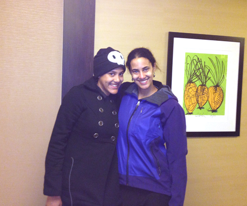 Sisters in Seattle! Look at the sweet skull hat she found for me! :)