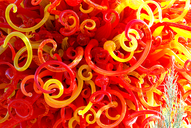 One of the weddings you attend is at the Denver Botanic Gardens during the Chihuly glass exhibit. Having gone to undergrad in Tacoma, Washington, you can recognize a Chihuly piece anywhere but you still find it beautiful in this setting…