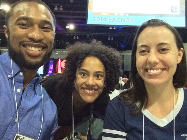 Look at you and your fellow CU grad students at the SACNAS 2014 conference, recruiting new grad students for your school! You look like a freak, but at least your friends look good. :) - Be prepared to reanalyze your data at least 4 times while writing and then again right after you defend.