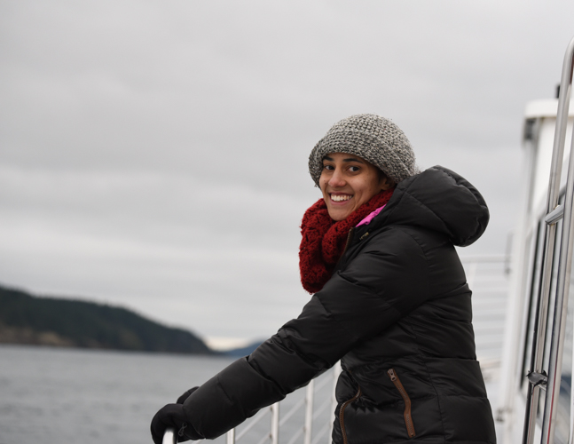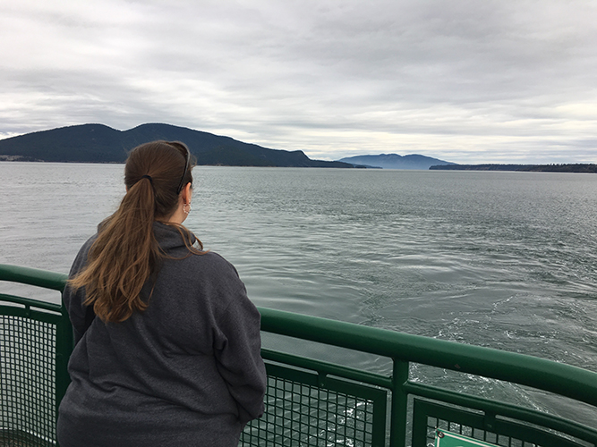 We arrived back at Friday Harbor tired but content after such an amazing day of hanging out with some of Washington’s finest creatures. The ferry ride back to Anacortes was filled with snacks and laughter as everyone looked over their photographs and recounted their favorite parts of the day. Everyone mostly stayed inside this time, which was good because it was SUPER windy outside. I went outside to watch the last of the sun go down and I loved the feeling of the wind on my back. It made eerie tones as it wrapped around the ferry too. It was such a neat ethereal experience to close out the day.