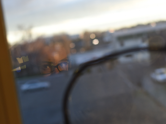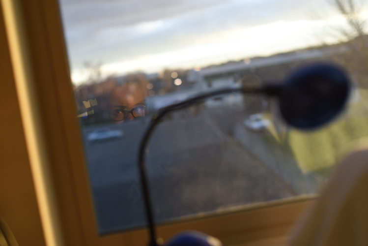 Anyway, on Sunday, I was sitting in our office so that the last glimpse of sun hit me in the face. It was great – so warm and bright. Then I looked up and saw that the sun was illuminating my face in a reflection in the window. I decided to try to capture it with my camera. I think it turned out pretty well. I love that you can’t even see the camera. There are just some Potassium eyes hovering there. Wahaaaaa.