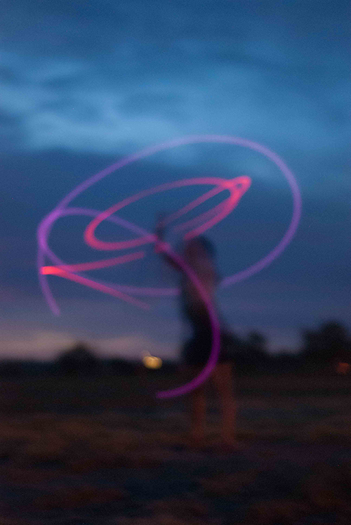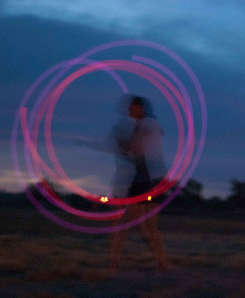 After spending the weekend frolicking around Boise, we set up camp on an old golf course in Ontario, Oregon, which was in the zone of totality. I spent the evening collecting golf balls and photographing Deoxyribolove doing poi with glow sticks.