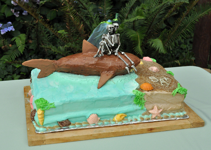 Cobalt and me: “So… we have this cake topper of a skeleton bride and groom and also we really like sharks… what can we do with that?”