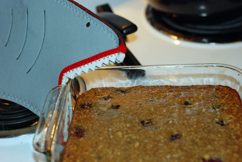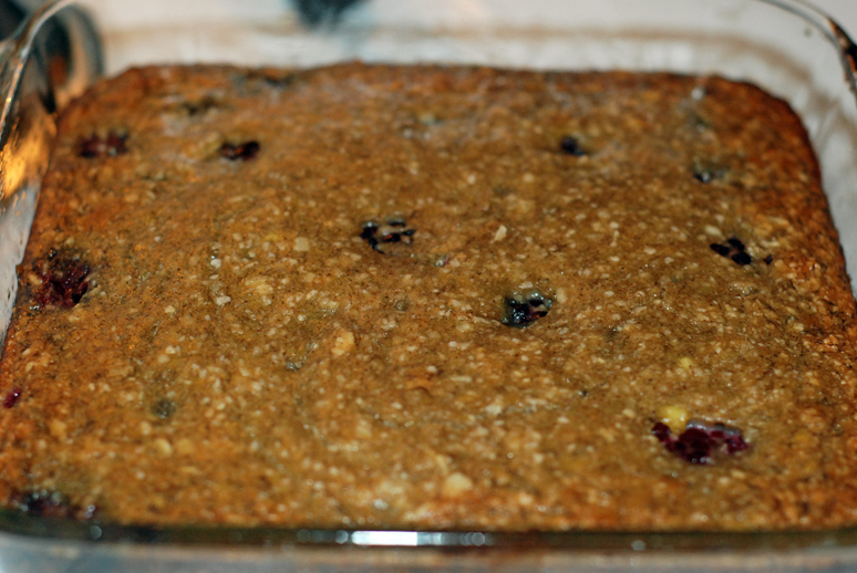 The final product cooling on the stove! It was delicious. Tasted like banana bread with blackberries and coconut in it. If you had fed them to me, I never would have guessed that they weren’t your typical flour and milk type banana bread bars. Yum.